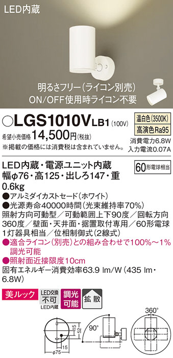 Panasonic ¥¹¥Ý¥Ã¥È¥é¥¤¥È LGS1010VLB1