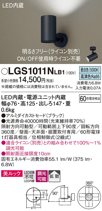 Panasonic ¥¹¥Ý¥Ã¥È¥é¥¤¥È LGS1011NLB1