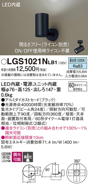 Panasonic ¥¹¥Ý¥Ã¥È¥é¥¤¥È LGS1021NLB1