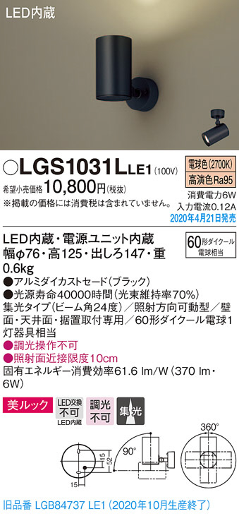 Panasonic ¥¹¥Ý¥Ã¥È¥é¥¤¥È LGS1031LLE1