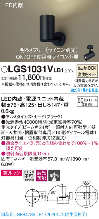 Panasonic ¥¹¥Ý¥Ã¥È¥é¥¤¥È LGS1031VLB1