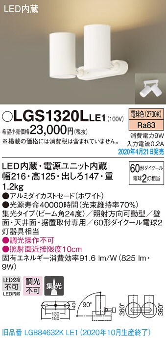 Panasonic ¥¹¥Ý¥Ã¥È¥é¥¤¥È LGS1320LLE1