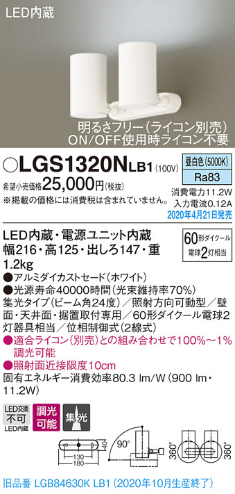 Panasonic ¥¹¥Ý¥Ã¥È¥é¥¤¥È LGS1320NLB1