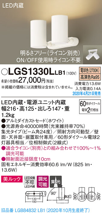 Panasonic ¥¹¥Ý¥Ã¥È¥é¥¤¥È LGS1330LLB1