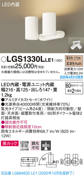 Panasonic ¥¹¥Ý¥Ã¥È¥é¥¤¥È LGS1330LLE1