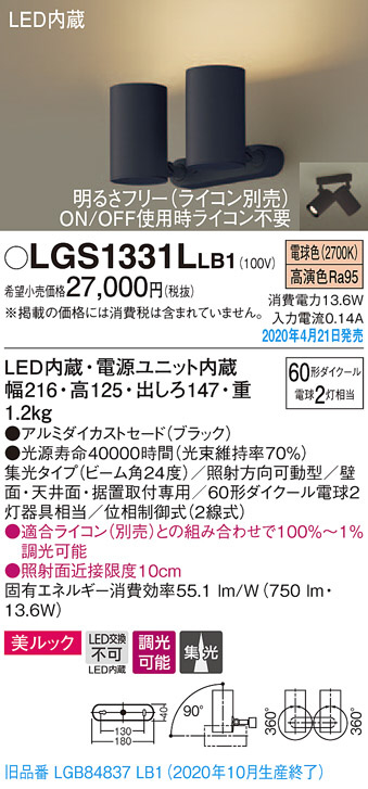Panasonic ¥¹¥Ý¥Ã¥È¥é¥¤¥È LGS1331LLB1