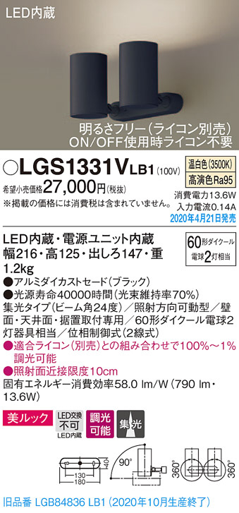 Panasonic ¥¹¥Ý¥Ã¥È¥é¥¤¥È LGS1331VLB1