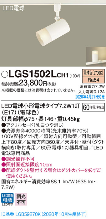 Panasonic ¥¹¥Ý¥Ã¥È¥é¥¤¥È LGS1502LCH1