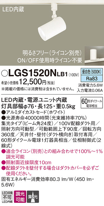Panasonic ¥¹¥Ý¥Ã¥È¥é¥¤¥È LGS1520NLB1