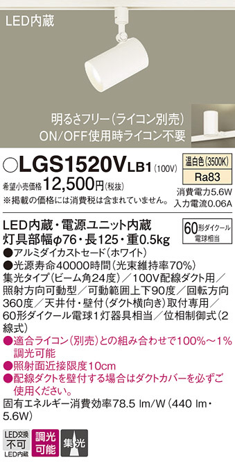 Panasonic ¥¹¥Ý¥Ã¥È¥é¥¤¥È LGS1520VLB1