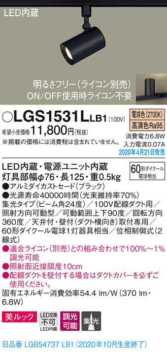 Panasonic ¥¹¥Ý¥Ã¥È¥é¥¤¥È LGS1531LLB1