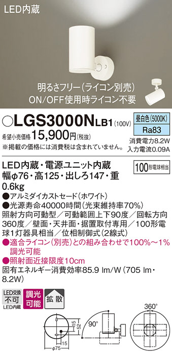 Panasonic ¥¹¥Ý¥Ã¥È¥é¥¤¥È LGS3000NLB1