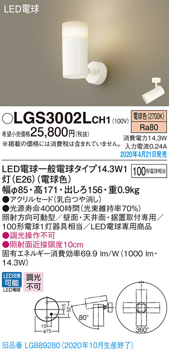 Panasonic ¥¹¥Ý¥Ã¥È¥é¥¤¥È LGS3002LCH1