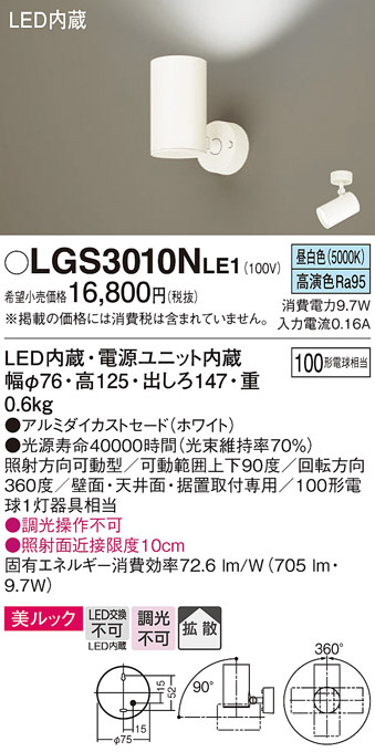 Panasonic ¥¹¥Ý¥Ã¥È¥é¥¤¥È LGS3010NLE1