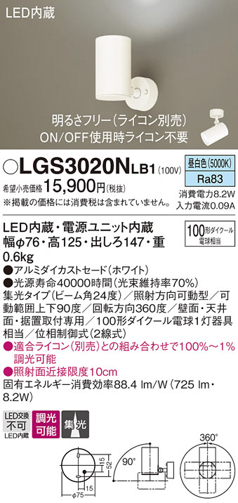 Panasonic ¥¹¥Ý¥Ã¥È¥é¥¤¥È LGS3020NLB1