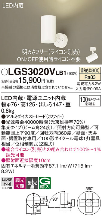 Panasonic ¥¹¥Ý¥Ã¥È¥é¥¤¥È LGS3020VLB1
