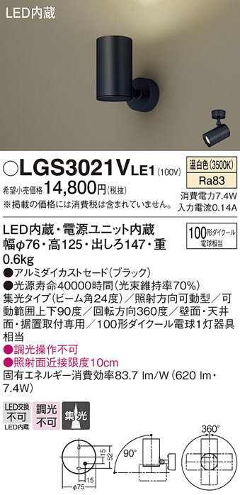 Panasonic ¥¹¥Ý¥Ã¥È¥é¥¤¥È LGS3021VLE1