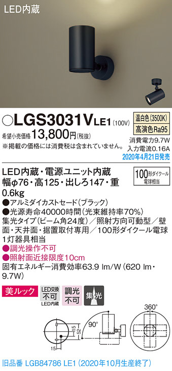 Panasonic ¥¹¥Ý¥Ã¥È¥é¥¤¥È LGS3031VLE1