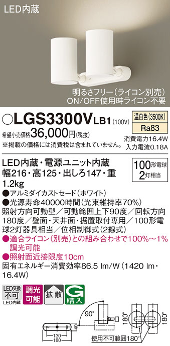 Panasonic ¥¹¥Ý¥Ã¥È¥é¥¤¥È LGS3300VLB1