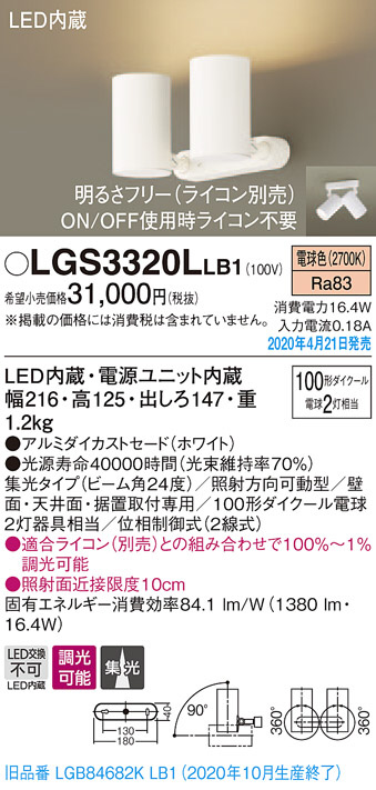 Panasonic ¥¹¥Ý¥Ã¥È¥é¥¤¥È LGS3320LLB1