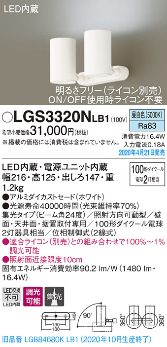Panasonic ¥¹¥Ý¥Ã¥È¥é¥¤¥È LGS3320NLB1