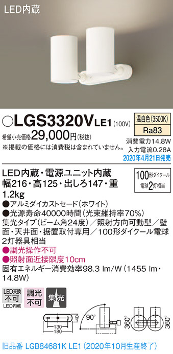 Panasonic ¥¹¥Ý¥Ã¥È¥é¥¤¥È LGS3320VLE1
