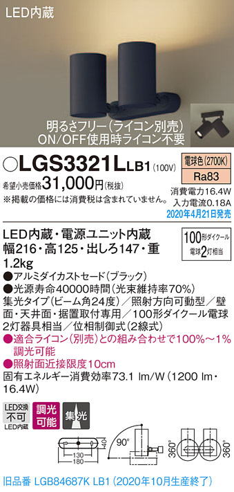 Panasonic ¥¹¥Ý¥Ã¥È¥é¥¤¥È LGS3321LLB1