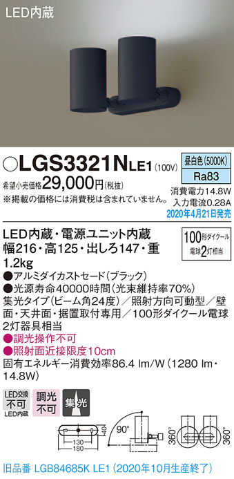 Panasonic ¥¹¥Ý¥Ã¥È¥é¥¤¥È LGS3321NLE1