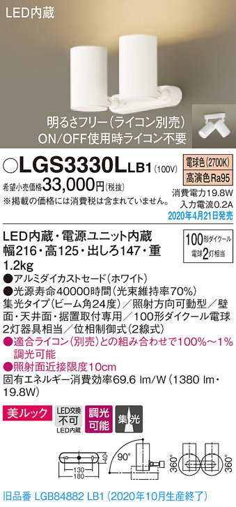 Panasonic ¥¹¥Ý¥Ã¥È¥é¥¤¥È LGS3330LLB1