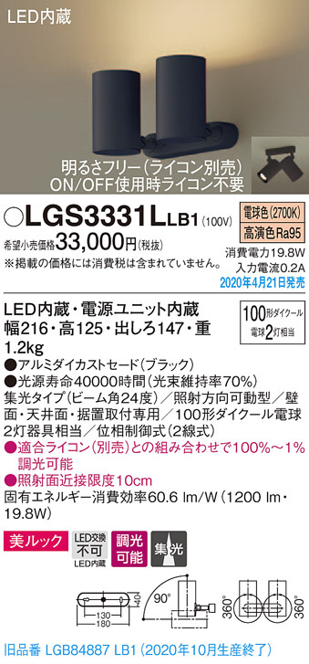 Panasonic ¥¹¥Ý¥Ã¥È¥é¥¤¥È LGS3331LLB1
