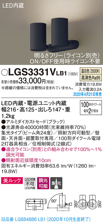 Panasonic ¥¹¥Ý¥Ã¥È¥é¥¤¥È LGS3331VLB1