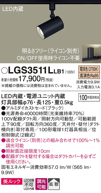 Panasonic ¥¹¥Ý¥Ã¥È¥é¥¤¥È LGS3511LLB1