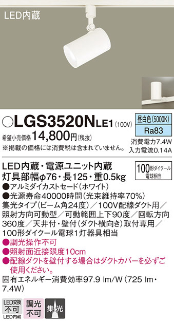 Panasonic ¥¹¥Ý¥Ã¥È¥é¥¤¥È LGS3520NLE1