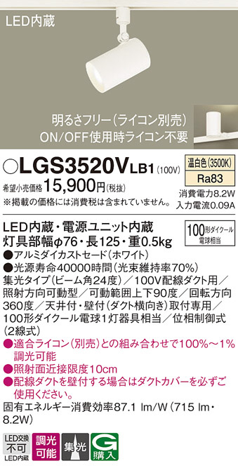 Panasonic ¥¹¥Ý¥Ã¥È¥é¥¤¥È LGS3520VLB1