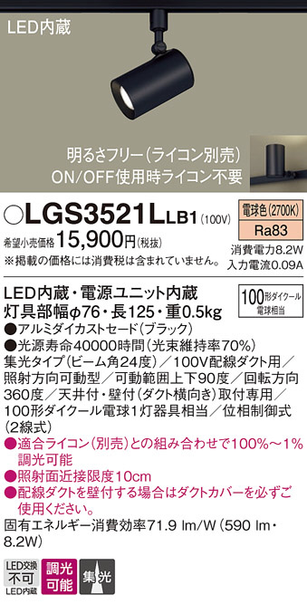 Panasonic ¥¹¥Ý¥Ã¥È¥é¥¤¥È LGS3521LLB1