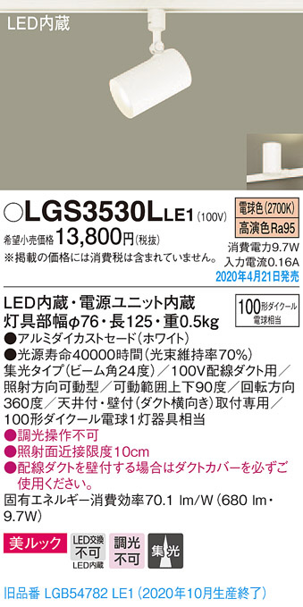 Panasonic ¥¹¥Ý¥Ã¥È¥é¥¤¥È LGS3530LLE1