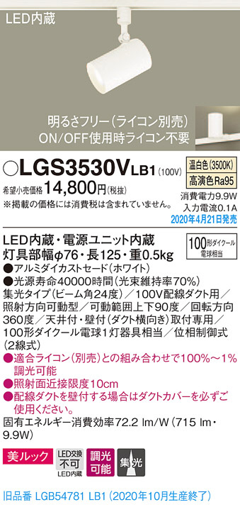 Panasonic ¥¹¥Ý¥Ã¥È¥é¥¤¥È LGS3530VLB1