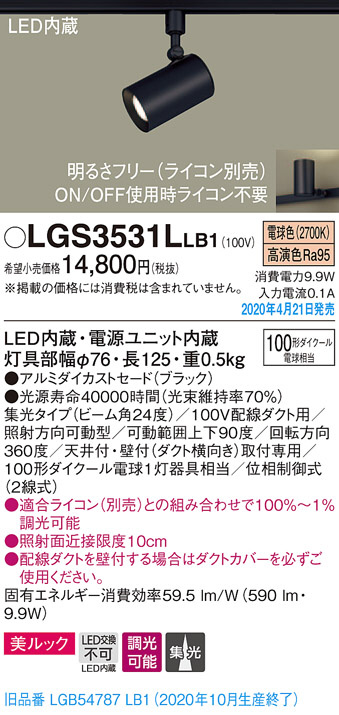 Panasonic ¥¹¥Ý¥Ã¥È¥é¥¤¥È LGS3531LLB1