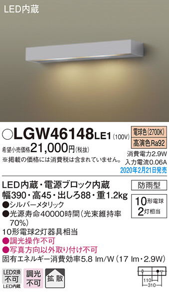 Panasonic ¥¨¥¯¥¹¥Æ¥ê¥¢¥é¥¤¥È LGW46148LE1