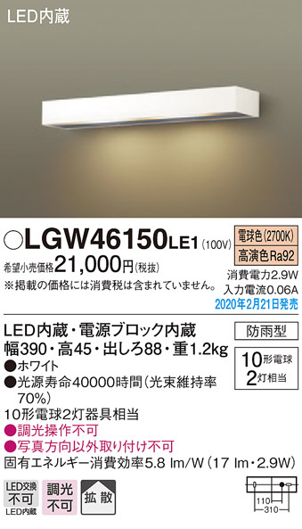 Panasonic ¥¨¥¯¥¹¥Æ¥ê¥¢¥é¥¤¥È LGW46150LE1