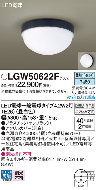 Panasonic ¥¨¥¯¥¹¥Æ¥ê¥¢¥é¥¤¥È LGW50622F