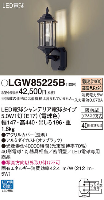Panasonic ¥¨¥¯¥¹¥Æ¥ê¥¢¥é¥¤¥È LGW85225B