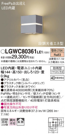 Panasonic ¥¨¥¯¥¹¥Æ¥ê¥¢¥é¥¤¥È LGWC80361LE1