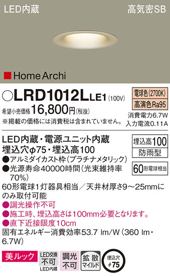 Panasonic ¥¨¥¯¥¹¥Æ¥ê¥¢¥À¥¦¥ó¥é¥¤¥È LRD1012LLE1