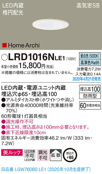 Panasonic ¥À¥¦¥ó¥é¥¤¥È LRD1016NLE1
