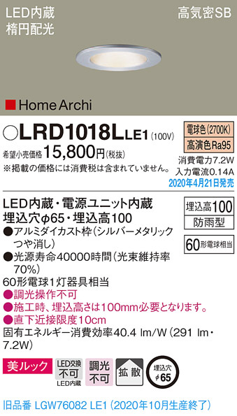 Panasonic ¥À¥¦¥ó¥é¥¤¥È LRD1018LLE1
