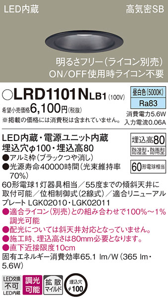Panasonic ¥¨¥¯¥¹¥Æ¥ê¥¢¥À¥¦¥ó¥é¥¤¥È LRD1101NLB1
