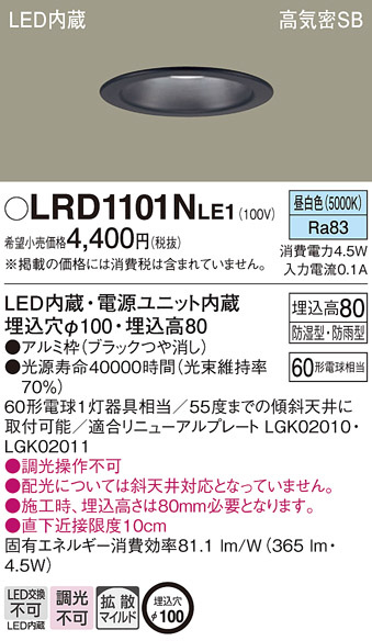 Panasonic ¥¨¥¯¥¹¥Æ¥ê¥¢¥À¥¦¥ó¥é¥¤¥È LRD1101NLE1