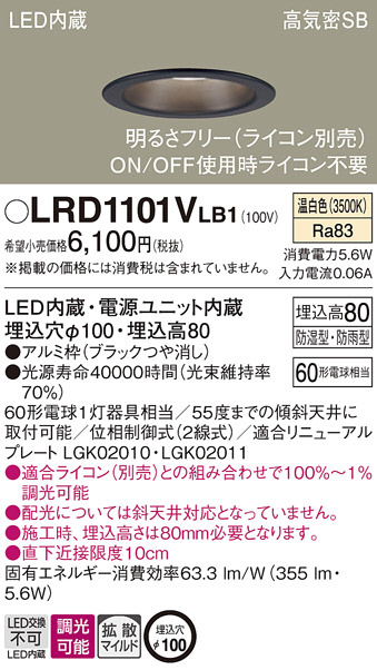 Panasonic ¥¨¥¯¥¹¥Æ¥ê¥¢¥À¥¦¥ó¥é¥¤¥È LRD1101VLB1