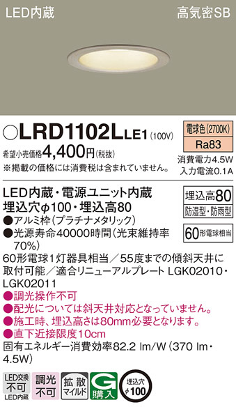 Panasonic ¥¨¥¯¥¹¥Æ¥ê¥¢¥À¥¦¥ó¥é¥¤¥È LRD1102LLE1